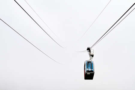 Fuente De, Cantabria/Spain; Aug. 04, 2015. A cable car in the fog.