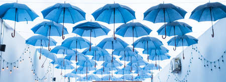 Blue umbrellas in the city of Funchal, Madeira Island, Portugal