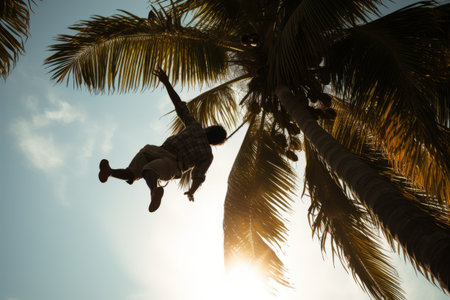 Unconventional Efforts: Captivating Adventures of a Man Swinging from a Coconut Tree –ar 3:2