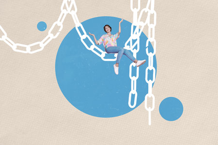 Trend template sketch design 3D photo collage of copyspace young lady sit metal chain bracelet chain security lock punishment guilty