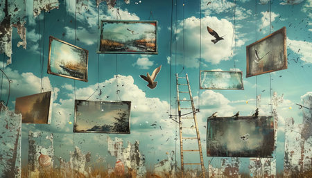 Conceptual creative artwork. Ideas, inspirations, imagintaions. Surrealism. Concept of astronautics, dreams, astronomy, art, Day of Human Space Flight