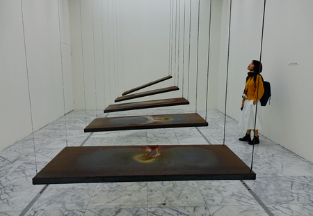 Taipei, Taiwan - Jan 8, 2016. A woman at Museum of Contemporary Art in Taipei, Taiwan. Taipei is the political, economic, educational, and cultural center of Taiwan.
