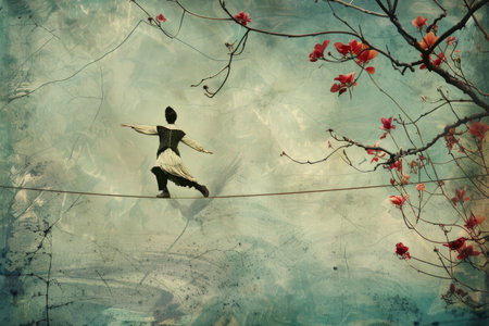Woman climbing the rope up. Ecologic, pollution concept. Mix media