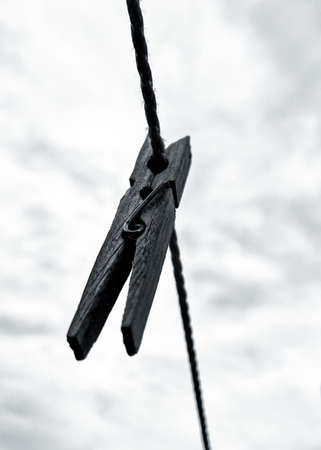 Clothes pins on a clothes line rope holding nothing. Space for you text.