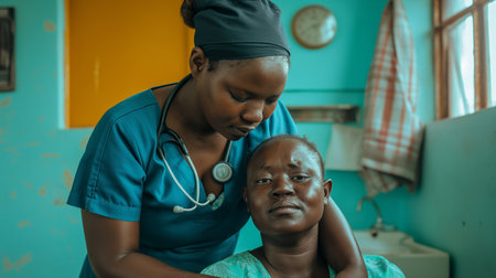 African american nurse helping an african american patient in a hospital