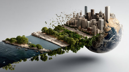 This striking image showcases the delicate balance between nature and urban development, symbolizing the importance of sustainability and environmental responsibility.