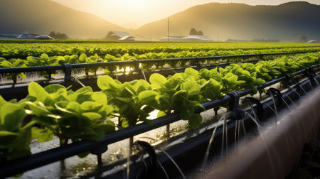 Green agriculture industry grows fresh organic vegetables high up generated by artificial intelligence