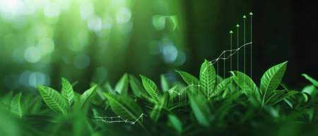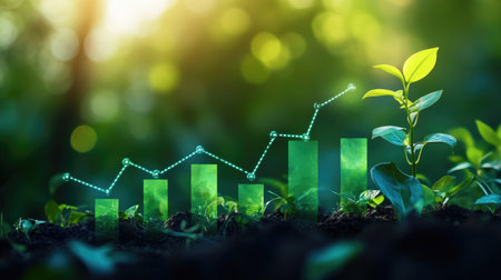 A vibrant green plant sprouts from a sustainable financial graph, symbolizing the growth of environmental investments and green economy initiatives This image represents the concept of sustainable growth, where economic progress is intertwined with ecological responsibility, creating a brighter future for generations to come AI Generative