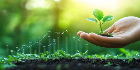 A visual representation of modern business strategy, where sustainable, organic growth is measured and analyzed with digital technology.