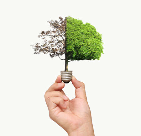 Saving energy and environment. Tree growth in light bulb for saving Ecology energy nature. Eco and Technology concept
