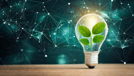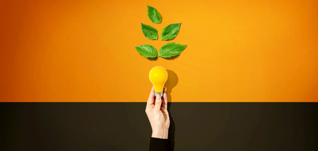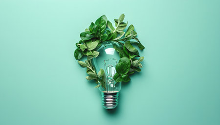 Eco friendly lightbulb featuring green leaves symbolizes sustainability and environmental consciousness. This innovative design promotes zero waste and highlights importance of nature modern