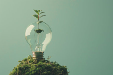 A light bulb with a green plant inside illuminates brightly against a backdrop of lush foliage, symbolizing the promise of clean and renewable energy.