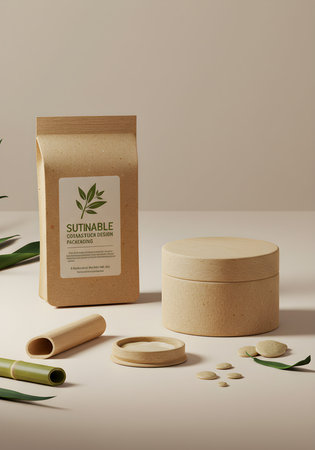 eco-friendly packaging mock-ups featuring natural materials, the earthy textures and organic elements of the packaging design, conveying a commitment to sustainability