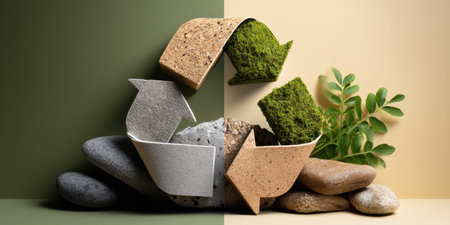 eco-friendly recycling campaign, eco-friendly banner showcasing a recycling symbol crafted from sustainable materials to promote waste reduction and recycling awareness