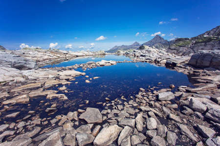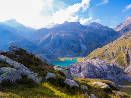 Lake between swiss and italy border at Grand Saint Bernard pass.