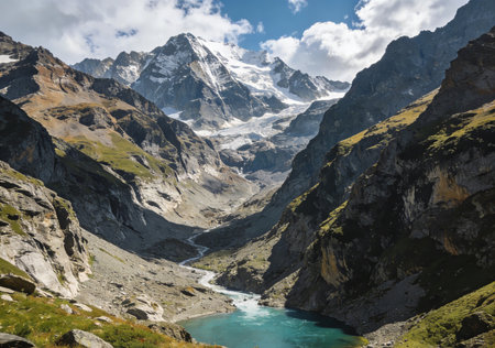 An AI generated illustration of majestic mountains revealing the majestic calm crisp beauty of nature