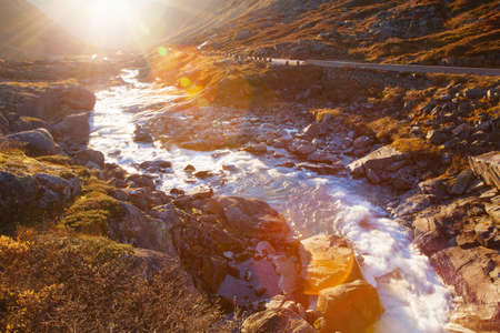 sunny autumn at Gamle Strynefjellsvegen, National tourist road, Norway