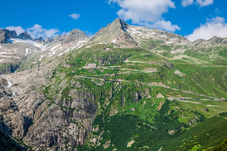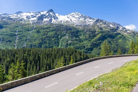 Beautiful mountain landscape, alpine road through pass, Switzerland