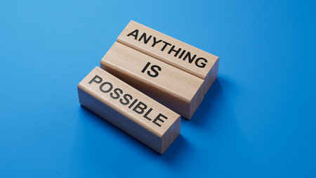 Anything is Possible symbol. wooden blocks with words Anything is Possible.Business and Anything is Possible concept.Copy space.3D rendering on blue background.