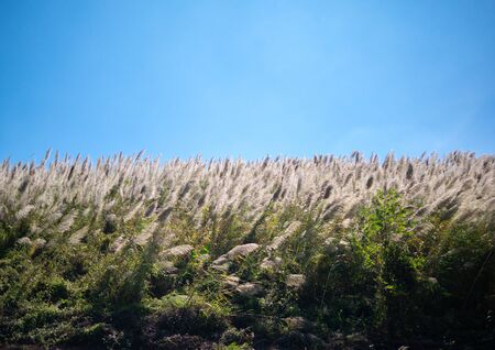 Silver Feather Plant, flowering Asia grass Miscanthus sinensis plant in Philippine nature blue color