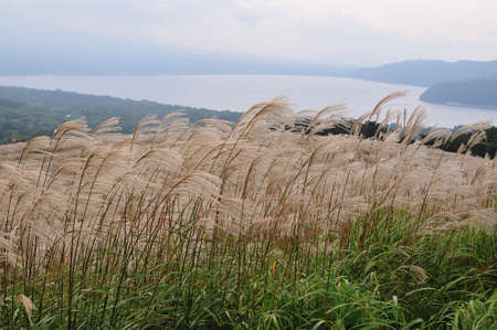 Wild Japanese Pampas Grass Field in Aso, Kumamoto, Japan.