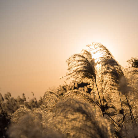 Silhouette of tall reeds or silver grass taken against the sunset. Taken in Haneul Park, Seoul, South Korea