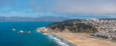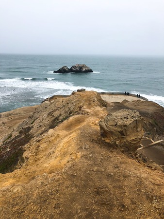 Scenic view from Sutro Baths Upper Trail on Pacific Ocean. Tourist spots in San Francisco, travel destinations in Bay Area, California landmarks, travel USA