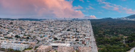 San Francisco, California, USA - October 22, 2021, city view from the top, of San Francisco's Grandview Park next to the 16th Avenue tiled steps. The photo was processed in pastel colors.