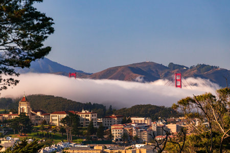 Golden Gate Bridge peeks out from the fog in San Francisco