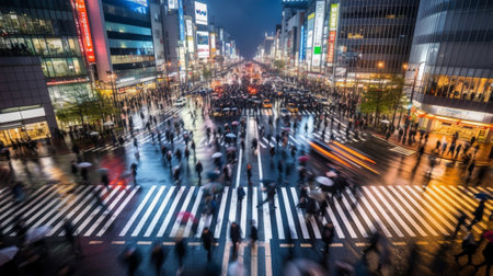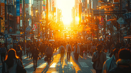 Vibrant scene of a busy Tokyo street filled with people walking and exploring the city life