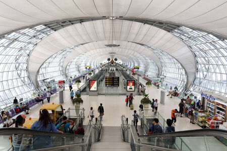 BANGKOK - MAR 01: Suvarnabhumi Airport is one of two international airports serving Bangkok on March 01, 2015 in Bangkok, Thailand. The airport handles 45 million passengers annually.