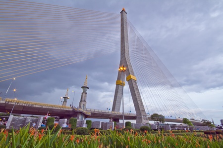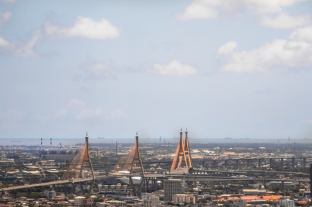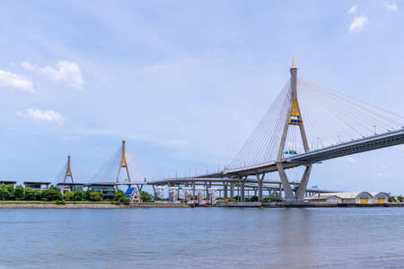 SAMUTPRAKARN,THAILAND - SEPTEMBER 29, 2013 : Bhumibol Bridge in Thailand, also known as the Industrial Ring Road Bridge, in Thailand. The bridge crosses the Chao Phraya River twice.