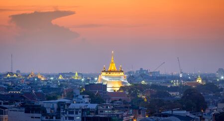 Golden mountain or Wat sraket with sunset background. This is landmark in Bangkok, Thailand.