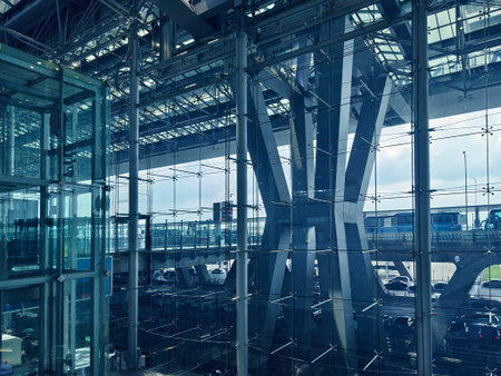 modernized railway station, with sleek and stylish design elements, including glass walls and metal accents, created with generative ai