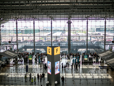 BANGKOK - JUNE 21 : Passengersin at Suvanaphumi Airport, Bangkok on JUNE 21, 2014, Suvarnabhumi airport is world's 4th largest single-building airport terminal.