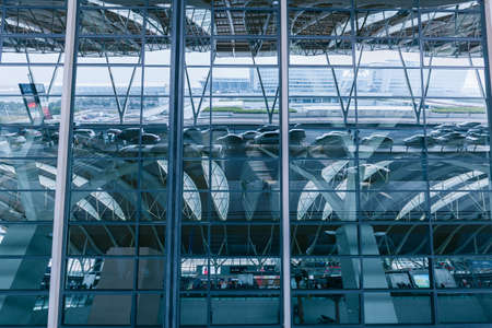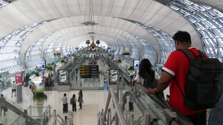 BANGKOK - july 8: Airport terminal at Suvarnabhumi Airport on 08.07.2017 Bangkok, Thailand.Suvarnabhumi is the twentieth busiest airport in the world, sixth busiest airport in Asia,