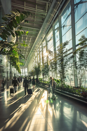 BANGKOK,THAILAND - JULY 11, 2014: passengers walk to the terminal at the Suvarnabhumi Airport, July 11, 2014 in Bangkok, Thailand.The airport is handling about 45 million passengers annually.