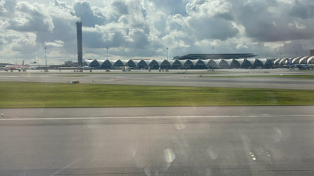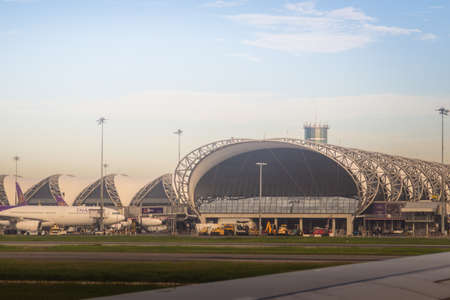 BANGKOK, THAILAND - CIRCA JUNE, 2015: view of Suvarnabhumi Airport from an aircraft in the daytime.
