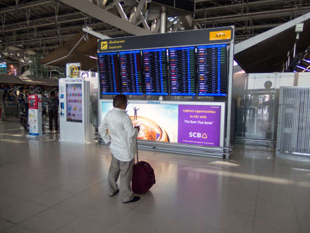 Suvarnabhumi BANGKOK THAILAND-31 OCTOBER 2018;In the Suvarnabhumi airport Passengers are viewing the flight information page. on BANGKOK THAILAND-31 OCTOBER 2018