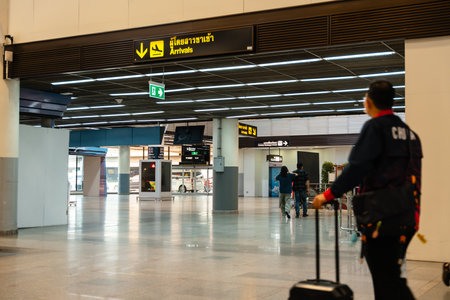 Bangkok, Thailand- 12 Feb, 2023: Passengers arrive at Suvarnabhumi Airport, Bangkok. It is the main international airport serving Bangkok