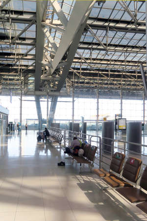 Bangkok, Thailand - 24 February, 2011: Interior of the main international airport terminal in Bangkok during the morning
