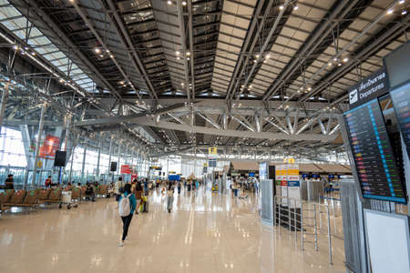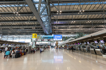 BANGKOK, THAILAND - AUGUST 16: This is the interior architecture of Bangkok Suvarnabhumi international airport check-in area on August 16, 2017 in Bangkok