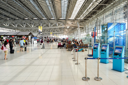 BANGKOK, THAILAND - JUNE 19, 2015: inside of Suvarnabhumi Airport. Suvarnabhumi Airport is one of two international airports serving Bangkok