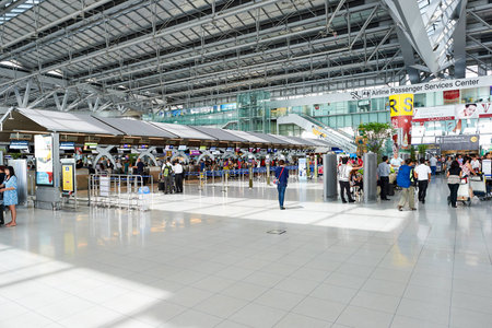 BANGKOK, THAILAND - NOV 07: Suvarnabhumi Airport interior on November 07, 2014. Suvarnabhumi Airport is one of two international airports serving Bangkok