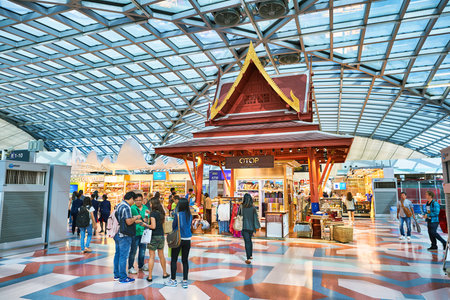 BANGKOK, THAILAND - OCT 23, 2016: inside of Suvarnabhumi Airport. Suvarnabhumi Airport is one of two international airports serving Bangkok