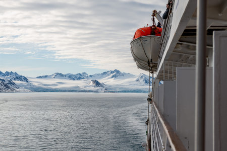 Expedition on ship in Svalbard norway and landscape ice nature of the glacier mountains of Spitsbergen Longyearbyen Svalbard arctic ocean winter polar day
