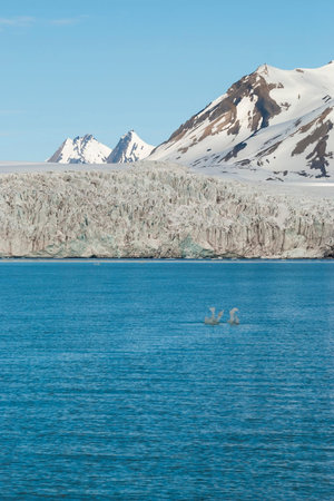 Beluga Wale on Expedition on ship in Svalbard norway and landscape ice nature of the glacier mountains of Spitsbergen Longyearbyen Svalbard arctic ocean winter polar day