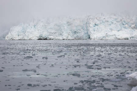 The terminus of the Monaco Glacier in Woodfjorden in the Svalbard Islands (Spitsbergen) in the high Arctic.