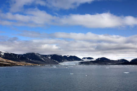 Landscape with glacier in Svalbard at summer time. Sunny weather.