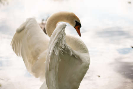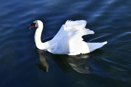 Beautiful white swan swimming on the lake. The mute swan, Cygnus olor
